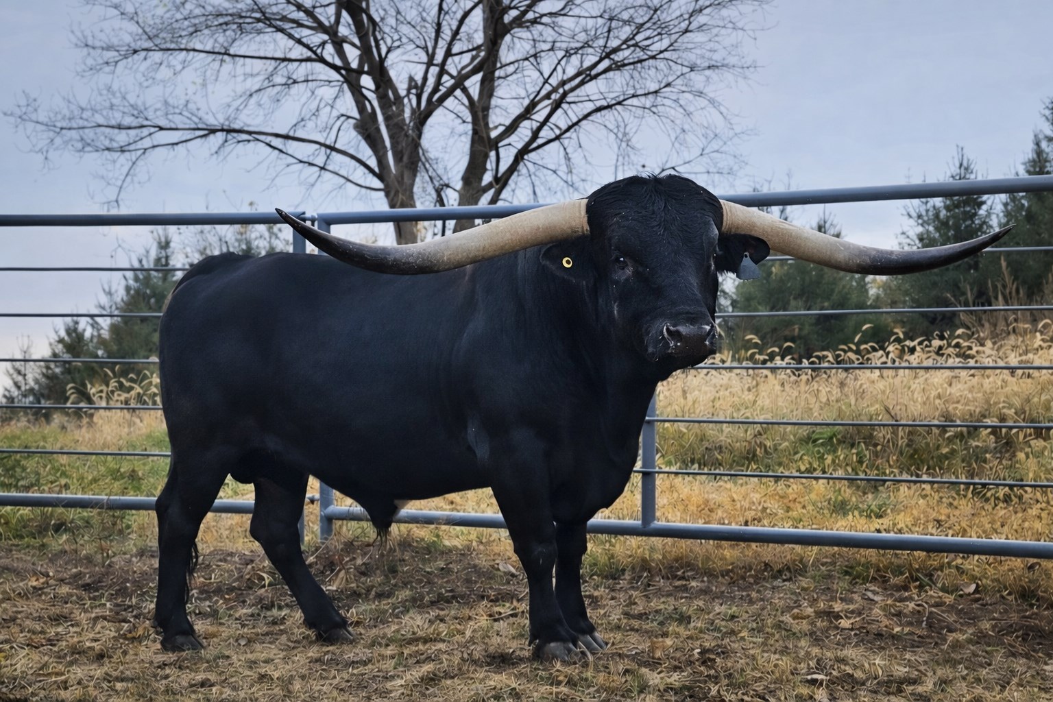 RL Black Market was special from the day he was born. And to top it all off he was DNA verified to be Homozygous Black. He can only throw black offspring. His parents are 2 of the best black longhorns in the breed and so far he is passing that on to his calves as well.